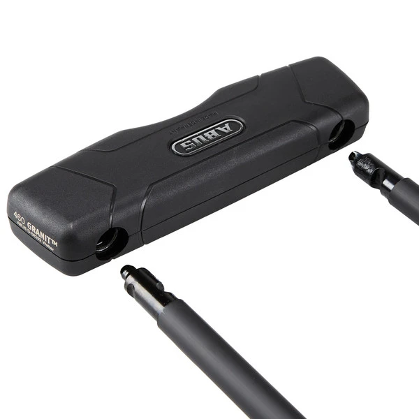 Das 12 mm starke Parabolbügelschloss bietet guten Schutz bei mittlerem Diebstahlrisiko. Der Bügel wird doppelt im Schlosskörper verriegelt; Aufbiegen oder Knacken mit Eisspray wird so unterbunden.