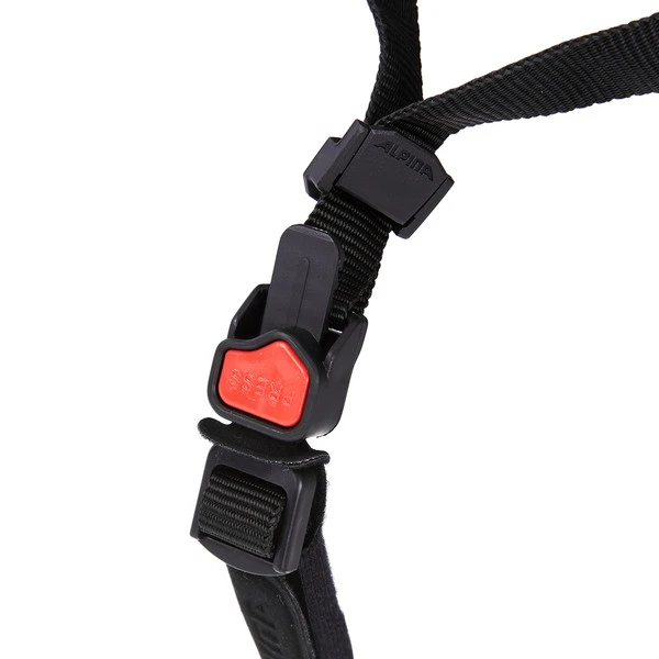 - Einfach bedienbares Kinnriemen-Gurtschloss mit mehrstufigem, verdrehsicherem Ratschensystem