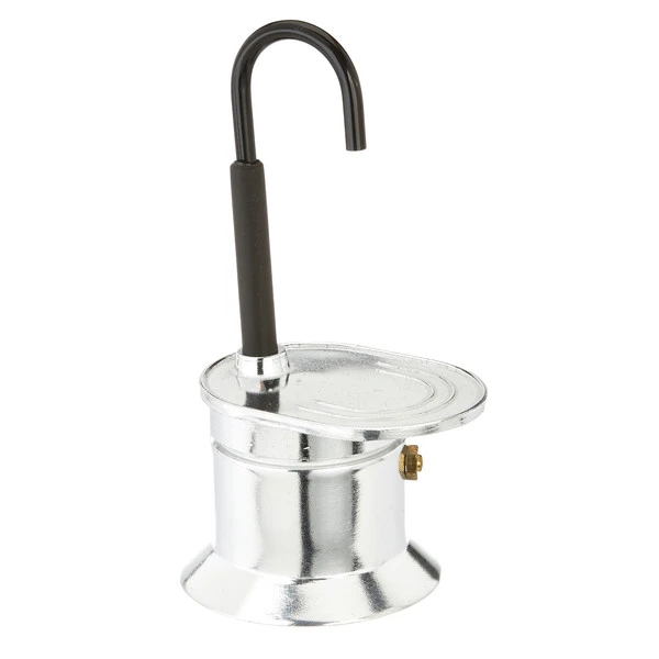 Beim Erhitzen steigt der Wasserdampf nach oben, durchdringt den mittig eingesetzten Filtereinsatz und gelangt dann über ein Steigrohr direkt in die Tasse. Aus Aluminium, mit Überdruckventil.