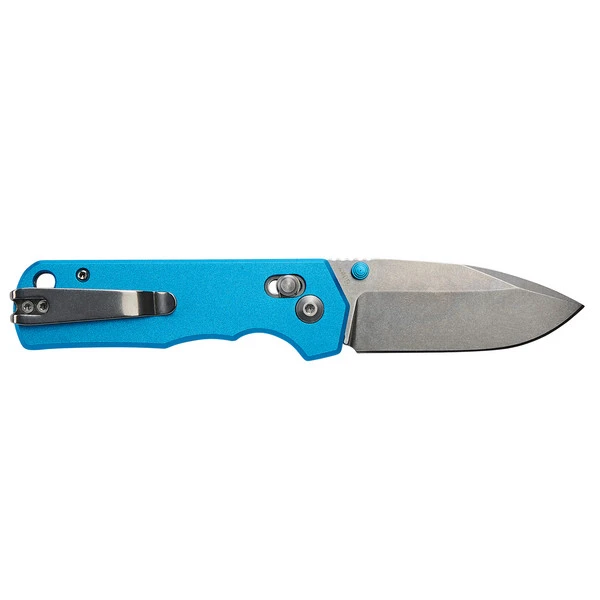 Durch den hohen Chromgehalt des Klingenstahls besitzt das Rockstub eine sehr hohe Rostbeständigkeit. Die Droppoint-Klinge mit Stonewash-Finish ist mit einem dekorativen Ricasso ausgestattet und kann dank des blauen Daumenpins einhändig in Position gebracht werden. Eine Axis-Lock-Arretierung verhindert das Einklappen der Klinge während der Benutzung.