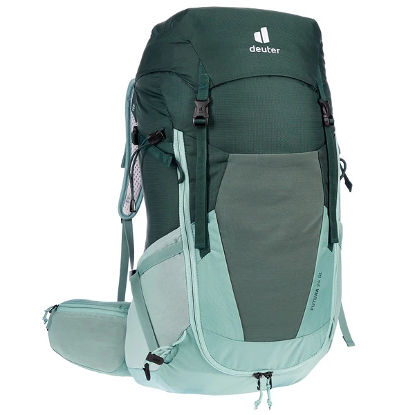 Auch die weitere Ausstattung des Wanderrucksacks überzeugt. So hat der Futura 24 SL zusätzlich zum klassischen Deckel einen großen RV-Frontzugriff. Drei elastische Außenfächer und ein Hüftgurtfach bieten Platz für Trinkflasche, Smartphone und Wanderkarte. Und in das Trinkblasenfach passen sogar 3L-Trinksysteme.