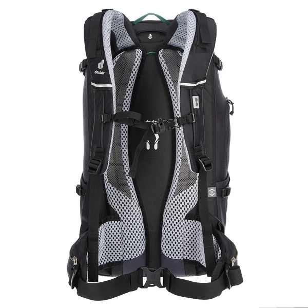 Das belüftete Tragesystem sitzt dabei wie angegossen. Wackeln ist für den Trans Alpine 32 EL ein Fremdwort. Dafür sorgen die beiden Aluschienen im Rucksack, die du an die Krümmung deines Rückens anpassen kannst. Die beweglich aufgehängten Schulterträger lassen dir die volle Kontrolle am Lenker, der breite Hüftgurt bringt die nötige Festigkeit. Der breite Luftkanal am Rücken garantiert ein angenehmes Klima.
