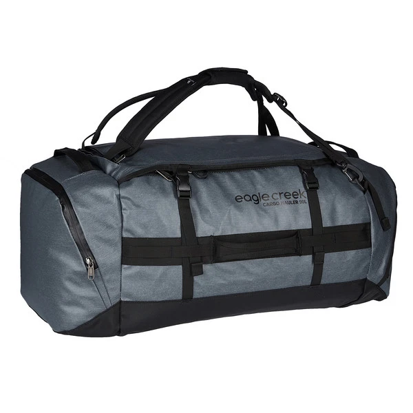 Die Reisetasche ist ringsum mit Griffen ausgestattet. So lässt sie sich gut auf die Ablage im Zug oder das Autodach wuchten und kann bei Bedarf sicher verzurrt werden. Daneben verfügt die Cargo Hauler Duffel über zwei gepolsterte Rucksackgurte, die in einem Extrafach verstaut sind. Mit ihnen kannst du die Duffle bequem auf dem Rücken transportieren.