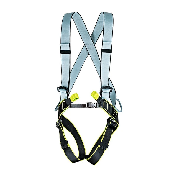 Steckschnallen an den Beinschlaufen ermöglichen ein schnelles Anlegen des Gurtes, auch mit Steigeisen oder schweren Bergstiefeln. Zur raschen Orientierung beim Anlegen sind Schulter- und Beinschlaufen farblich unterschieden und die Beinschlaufen zusätzlich mit Rechts/Links-Kennzeichnungen versehen.