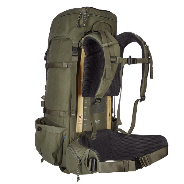 1960 wechselte Fjällräven vom Holz- zum Aluminiumgestell und markierte damit einen Wendepunkt in der Trekkingrucksack-Konstruktion. Heute geht Fjällräven den umgekehrten Weg: weg vom Alu, hin zum Holz! Die laminierten Holzleisten sind dabei mindestens genauso stabil wie das zuvor beim Kajka verwendete Aluminium. Im Direktvergleich zur Aluminiumstrebe reduziert die Strebe aus finnischer Birke die CO2-Belastung um mehr als 90%. Der Gesamt-CO2-Fußabdruck des Kajka reduziert sich damit um 10%. Und das, ohne in der Funktion oder Belastbarkeit Kompromisse einzugehen. Und ohne zusätzliches Gewicht!