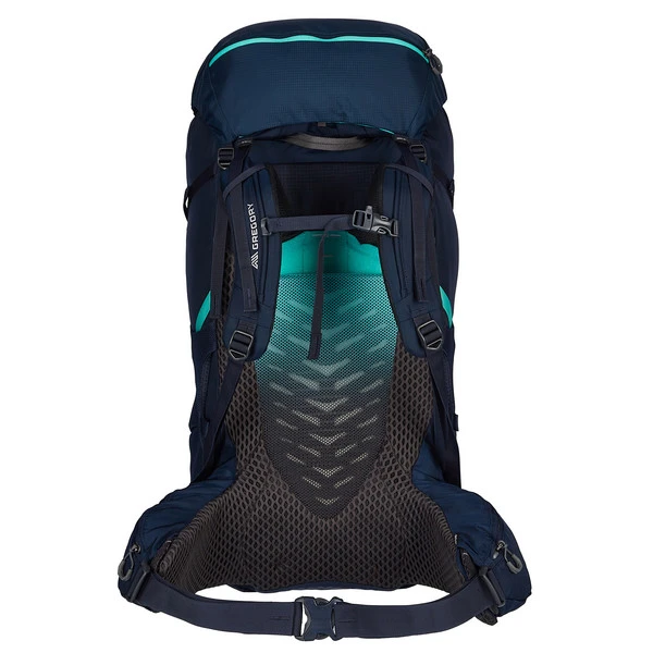 Das VersaFit-System hat einen leichten Stahlrahmen mit Querlenkern, die für einen stabilen Sitz ohne Flexibilitätsverlust sorgen. Die Traglast des Rucksacks wird hierbei schlüssig auf den Hüftgurt übertragen. Das perforierte 3D-Rückenpolster sorgt für eine angenehme Belüftung des Kontaktrückens und die Rückenlänge kann stufenlos per Klett verstellt werden. Das Tragesystem des Trekkingrucksacks ist zudem an die weibliche Anatomie angepasst.