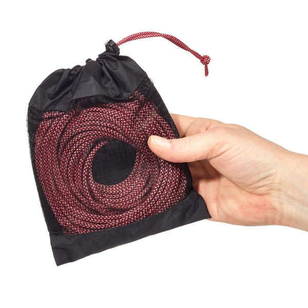 Auf Basis der 3-mm-Guy-Line entworfene reflektierende Zeltleine. Bei dieser Zeltleine wurden starke Vectran-Fasern mit Polyester verwebt, die zusammen eine Reißfestigkeit von 80 kg aufweisen.