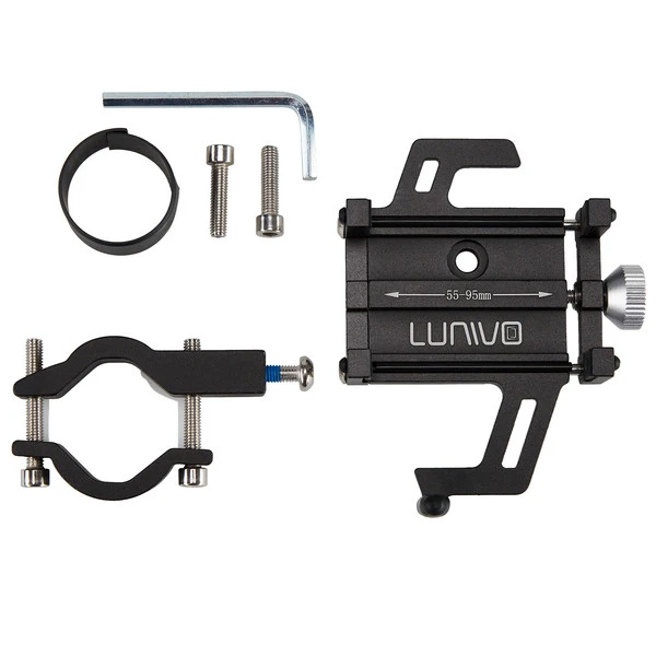 Die Montage ist einfach, der Halter passt auf Lenker mit einem Durchmesser von 18 bis 32 mm. Dein Smartphone klemmst du schnell und effektiv per Rändelschraube ein; eine Gummi-Polsterung an den seitlichen Klemmblöcken, der Auflage und dem unteren Anschlag schützt das Smartphone vor Kratzern und sorgt für einen rutschfesten Halt. Mit der großen Rändelschraube klemmst du dein Handy spiel- und wackelfrei in die Halterung ein.