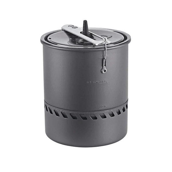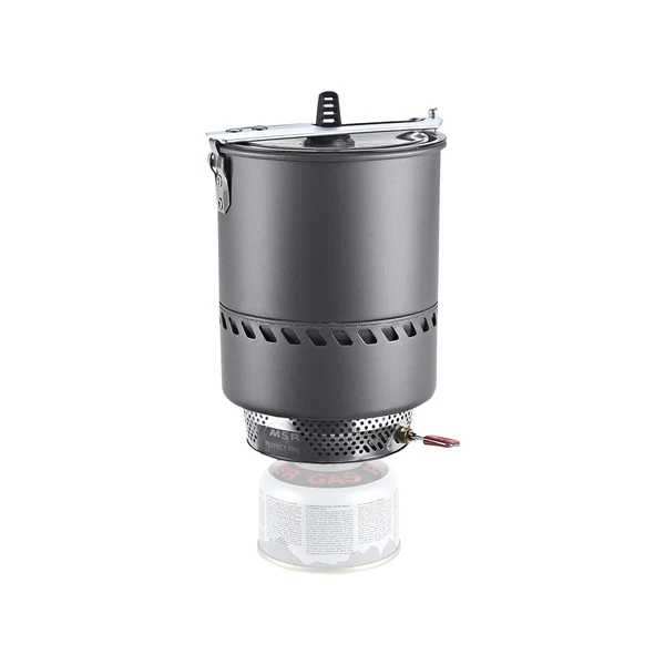 Ein spezieller Wärmetauscher am Topfboden leitet die Wärme äußerst effizient, was gleichzeitig natürlich auch Brennstoff und somit Gewicht spart. Selbst bei Wind kocht der Reactor zuverlässig, denn der Topfboden dient auch als Windschutz. Der hartanodisierte Aluminiumtopf verfügt im Innern über eine Messskala und hat ein nutzbares Volumen von 1,5 Litern. Der seitliche Griff aus Aluminium rastet sicher ein und sichert den Kunststoffdeckel beim Transport. Brenner und Gaskartusche können platzsparend im Topf transportiert werden.