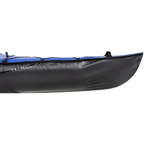 Die Kombination aus einem minimalistischen Aluminiumgestänge und seitlichen Luftelementen sorgt für die nötige Steifigkeit und Fahrstabilität des Hybriden. Die Außenhaut besteht aus reißfestem PVC, ein installierter Kielstreifen schützt zusätzlich vor Abrieb. Das kompakte Scubi ist durch seine leichte Bauweise ideal für alltägliche Touren auf ruhigen Gewässern.