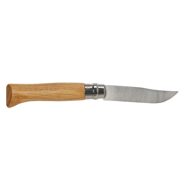 Opinel stattet seine Taschenmesser mit der Virobloc-Sicherung aus. Der geschlitzte Sicherungsring wird etwas weniger als eine viertel Umdrehung gedreht und verhindert anschließend das Einklappen der geöffneten Klinge. Im geschlossenen Zustand blockiert er das versehentliche Aufklappen in der Hosentasche.