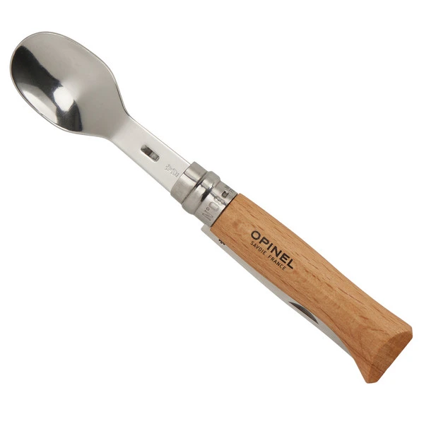 Mit dieser Erweiterung für Opinel-Messer der Größe 08 wird der Anwendungsbereich des Messers grundlegend erweitert. In Zusammenarbeit mit dem Designer Franck Fontana wurden ein Löffel und eine Gabel entwickelt, die sich im Griff des Messers befestigen lassen. Hierzu wird die Messerklinge eingeklappt und das Besteckteil in den Spalt am Ende des Griffs gesteckt. Durch den Lockring wird der Einsatz anschließend fixiert und in Position gehalten.