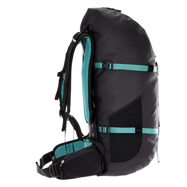 Zwischen den Rückenpolstern findest du einen wasserdichten Reißverschluss zum Hauptfach. Du kannst den Atrack ST der Länge nach aufzippen und auf diese Weise wie eine Reisetasche bepacken. Im Hauptfach befinden sich auch vier praktische Innenfächer. Und alles, was schnell zur Hand sein muss, bekommst du in den beiden RV-Taschen auf dem Hüftgurt griffbereit unter.