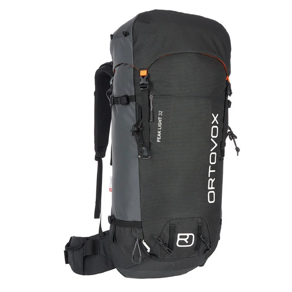Der Peak Light 32 bietet Halterungen für Kletterseil, Skier, Eisgeräte, Trekkingstöcke und ein Helmnetz und ist damit vielseitig einsetzbar. Der Hüftgurt verfügt über eine Materialschlaufe, in die du Materialkarabiner schnell und griffbereit einhängen kannst. In die RV-Tasche auf der anderen Seite des Hüftgurts passen Kleinigkeiten oder Snacks.