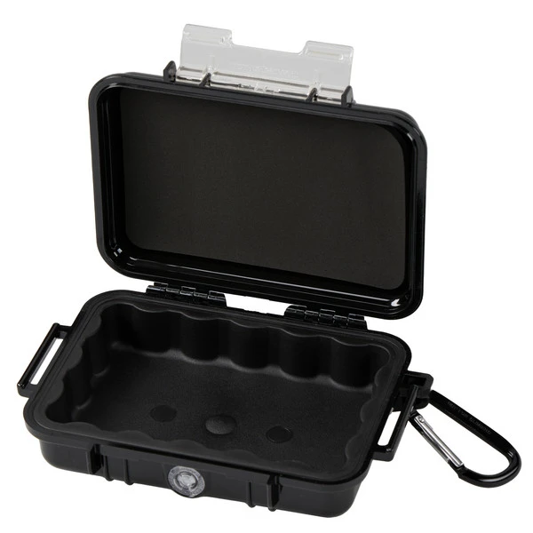 Die Innenverkleidung aus Gummi dient beim Microcase nicht nur als Schutzpolster, sondern auch als Deckeldichtung. Denn die Box ist wasserdicht nach IP67 und übersteht so auch ein kurzzeitiges Untertauchen. Mit dem praktischen Karabiner kannst du das Microcase an deiner Ausrüstung sichern.