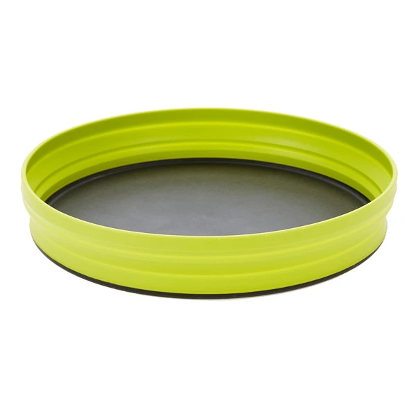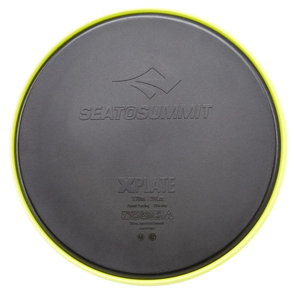 Der große Teller besitzt ein Volumen von 1170 ml und kann flach gefaltet werden. Sein Boden ist aus schnittfestem Kunststoff hergestellt und kann als Schneidebrett verwendet werden.