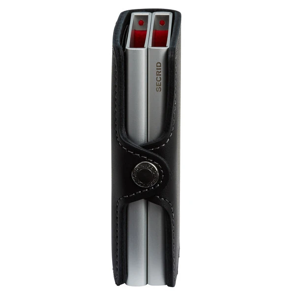 Das Twinwallet besteht aus 2 Cardprotectors. In jedem der beiden Cardprotectors kannst du 4 geprägte oder 6 ungeprägte Karten (also bis zu 12 insgesamt) unterbringen. Mit einer einfachen Betätigung des Hebelmechanismus lassen sich diese aufgefächert hinausschieben. Das geht auch ganz ohne das Portmonee zu öffnen. Der Cardprotector schützt deine Karten vor dem Auslesen (RFID-safe) und auch vor Beschädigungen.