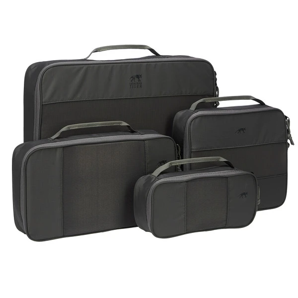 Mit den robusten Gepäckorganizern von Tasmanian Tiger wird das Kofferpacken zum Kinderspiel. Die drei kleineren Taschen können passgenau auf die große gepackt werden. So wird jeder Zentimeter im Rucksack oder Koffer sinnvoll ausgenutzt.