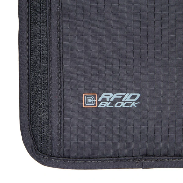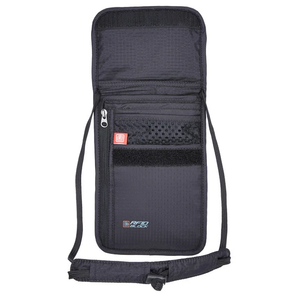 In dem Brustbeutel ist eine Cryptalloy-Folie verarbeitet. Diese Schutzfolie schirmt auf allen relevanten RFID-Frequenzbereichen (100 kHz bis 4 GHz) ab. Dadurch können die auf den RFID-Chips deiner Karten gespeicherten Daten nicht ungewollt ausgelesen werden.