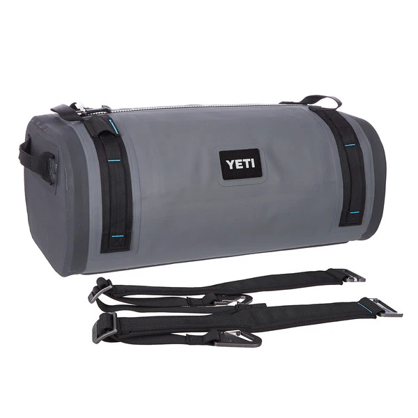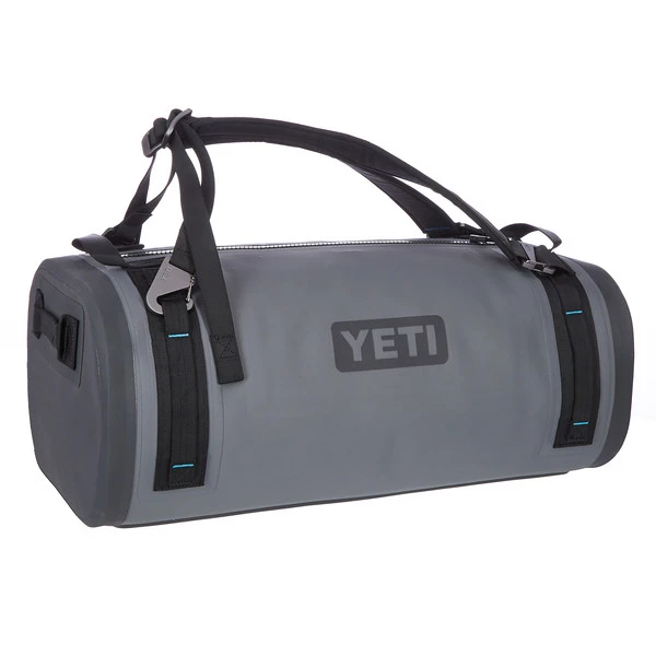 Das Außenmaterial der Panga Duffle besteht aus einem besonders dichten Nylon und einer dicken TPU-Laminierung. Das macht die Tasche nicht nur wasserdicht, sondern auch einstichresistent. Die Nähte der Duffle selbst sind verschweißt und an den Zurrpunkten verstärkt. Die Tragegurte der Panga Duffel sind dank der praktischen Metallkarabiner an beiden Enden bei Nichtgebrauch schnell entfernt.